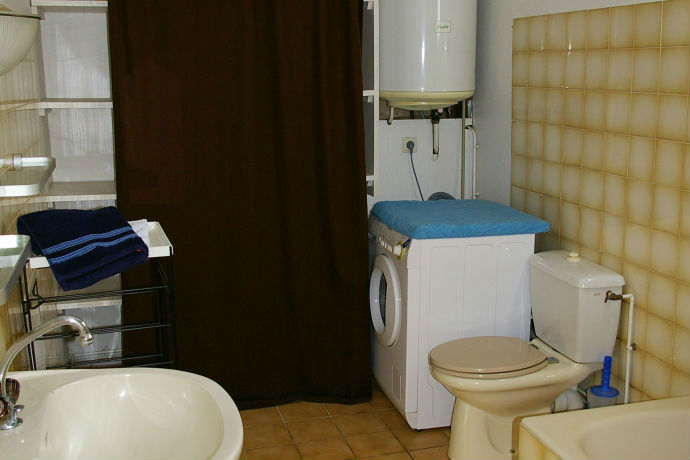 - Salle de bain avec lavabo, baignoire, WC, lave-linge