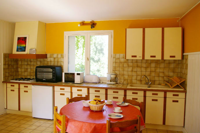 - Cuisine équipée : gazinière, micro-onde, réfrigérateur-congélateur